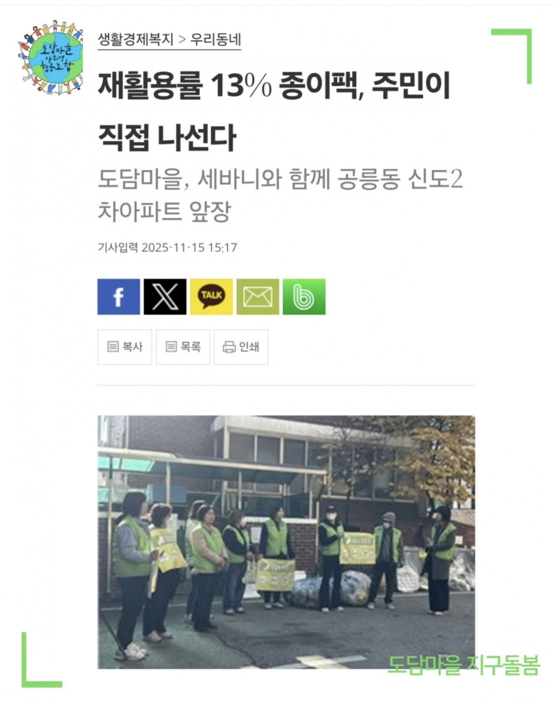 - 2025 : 노원구, 도봉구 종이팩 재활용 분리배출 시범사업 실시 (노원: 43개, 도봉22개 단지)