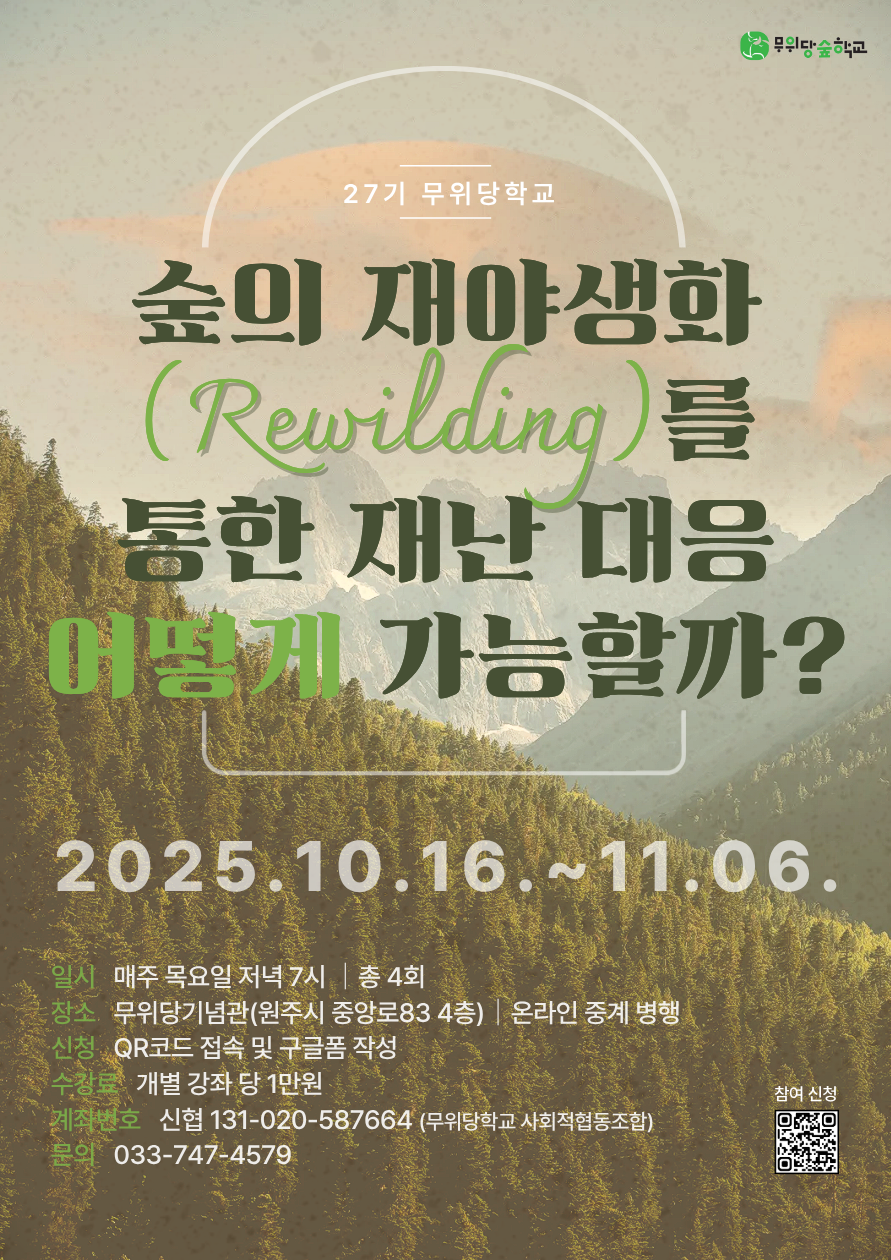 2025.10.16. ~ 11.06. 무위당학교 27기 * 무위당숲학교 <숲의 재야생화를 통한 재난 대응 어떻게 가능할까?> 4회차 운영