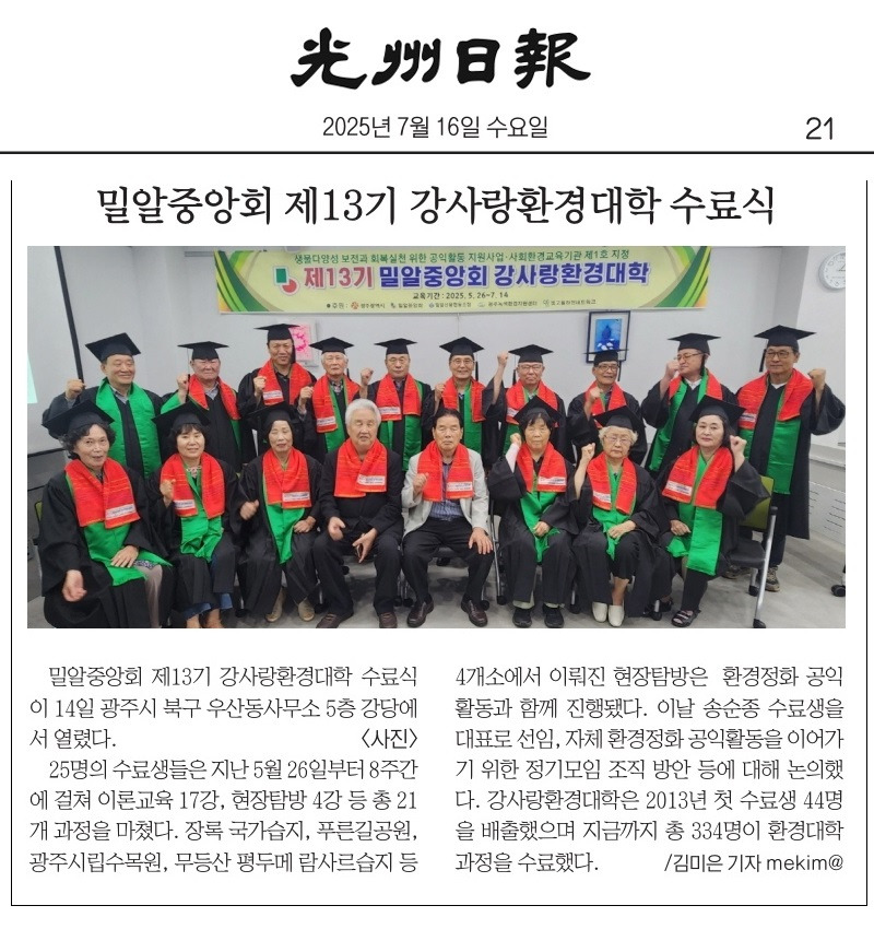 ○ 2021. 07. 15 밀알중앙회 영산강환경대학 제6기 17명 수료 (계 154명)