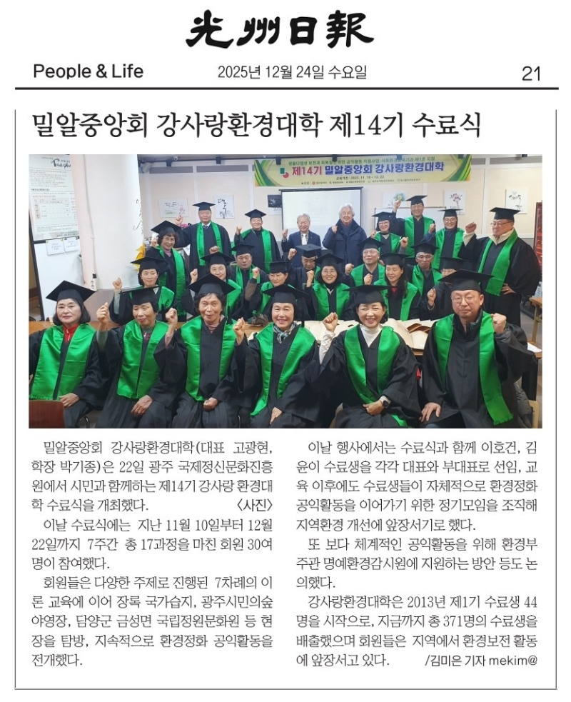 ○ 2025. 12. 22 밀알중앙회 강사랑환경대학 제14기 37명 수료 (계 371명)